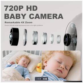 Oferece controle remoto pan-tilt-zoom da câmera, visão noturna infravermelha automática e monitor térmico ambiente. Inclui áudio bidirecional, 8 naninhas e modo VOX que ativa a tela por som, com bateria de até 48 horas de autonomia. Indicado para uso interno em berçários.
