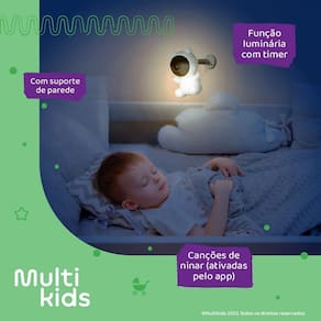 Babá Eletrônica Peek-a-Boo Dual Monitor e APP Multikids - BB491Não há dúvidas de que a babá eletrônica é um item essencial do enxoval do bebê. Mas qual a melhor opção? Wifi para poder acessar de qualquer lugar pelo celular ou a de monitor, que apesar da distância limitada tem a unidade dos pais dedicada? Agora você não precisa mais escolher!Com a Peek-a-Boo Dual você tem ambas as opções em um único produto! A conexão pelo celular via app, permite acesso de qualquer lugar, perto ou longe. Já a conexão pelo monitor conta com unidade dos pais dedicada e permite que você use seu celular para outras coisas sem perder um segundo sequer do soninho do seu pequeno. Tem mais de um usuário? Não tem problema! A função família do app permite que você compartilhe o acesso para outros usuários, bastando adicionar cada um pelo próprio app! Tem mais de um bebê pra olhar? Também não tem problema! Comprando a câmera avulsa da Peek-a-boo (bb469) é possível acompanhar as duas câmeras, tanto pelo monitor quanto pelo celular, ao mesmo tempo. Com resolução de 1080P e transmissão de 15 frames por segundo, a Peek-a-boo conta com visor colorido tanto no monitor quanto no app. Seu campo de visão é de 100 graus e conta com visão noturna que permite que você fique de olho no bebê mesmo quando o quarto estiver escuro. O áudio bidirecional permite que você fale e escute o seu bebê à distância, tanto no monitor quanto pelo celular.Os detectores de som e movimento ajudam a identificar facilmente o que o seu pequeno está fazendo e se ele precisa de você. A luz interna, quando acionada pelo app, transforma a babá em uma luminária que pode ser programada para desligar automaticamente via timer. Além de tudo isso, conta com um sensor de temperatura que pode ser programado para avisar quando a temperatura não estiver adequada para o bebê e uma coleção de canções de ninar ativadas via app ou monitor. No app, seu zoom permite que a imagem seja aumentada em até 6 vezes para que você possa ver seu bebê de pertinho mesmo se a câmera estiver um pouco mais longe do berço. Além da transmissão em tempo real, é possível gravar ou tirar fotos para verificação posterior. E se você estiver sem espaço para armazenar essa coletânea cheia de fofura, pode ficar tranquilo!Ela tem espaço para você colocar um cartão de memória e não perder nadinha! Com suporte para parede e capa em formato lúdico de ursinho, a Peek-A-Boo além de trazer comodidade e segurança, combina com o quarto do seu bebê. A babá eletrônica Wifi Peek-A-Boo une a qualidade Multikids que você e seu bebê já conhecem e confiam à tecnologia de ponta da Multi. O acesso pelo aplicativo Multi Liv permite acesso e controle pela casa conectada e é compatível com IOS e Android.Fique sempre pertinho do seu bebê e deixe ele pertinho de você com a Peek-A-Boo da Multikids Baby.*Cartões de Memória Multi Compatíveis - MC160, MC161, MC162, MC163 MC150, MC151.Ficha TécnicaMarca: MultikidsModelo: Babá Eletrônica Peek-a-Boo Dual Monitor e APP Multikids - BB491Cor: BrancoComposição do Material: Câmera: ABS e PC; Capa: 100 Silicone; Suporte de parede: ABS e Metal Monitor: PC; ABSDimensões (LxAxC): 23 x 12.2 x 7cmPeso: 220gConteúdo da Embalagem: 1 Câmera WIFI, 1 Monitor, 1 Capa de Silicone, 2 Cabos USB, 2 adaptadores de tomada, 1 suporte para fixação com parafusos, 1 chave para resetar 1 manual de instruçõesImagens meramente ilustrativas.