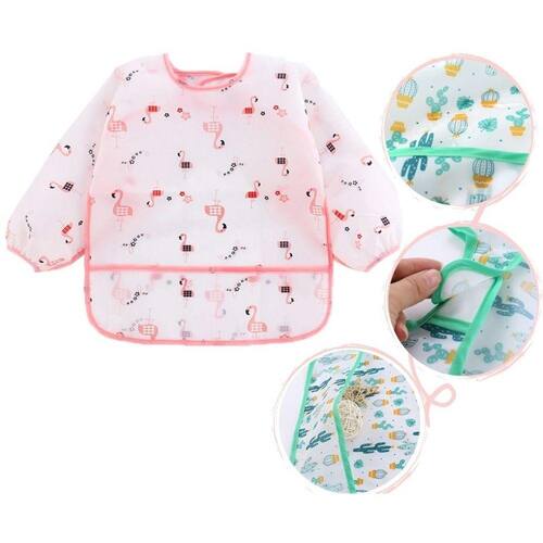 Babador Avental Impermeável Manga Longa Estampado - COR:Rosa;,TAMANHO:12-18M;