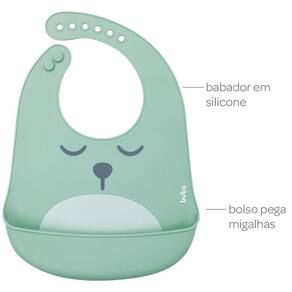 O Babador em Silicone Cata-Migalhas da Buba possui um bolso frontal, que auxilia na limpeza do pequeno e do ambiente na hora da refeição. Possuindo fecho ajustável, ele regula a altura no pescoço do pequeno, deixando esse momento mais confortável.