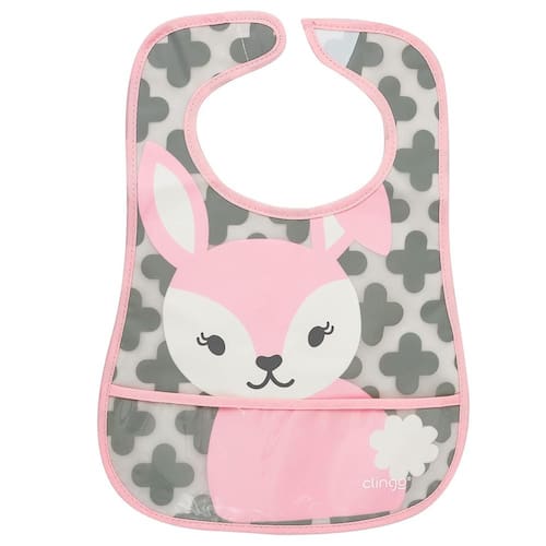 O Babador impermeável CLINGO é ideal para a hora da alimentação.