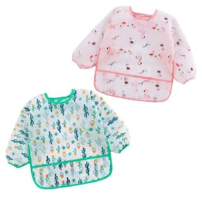 O Babador preferido das mamães para colocar em seus Bebês, manga longa, tecido impermeável e molinho, coletor de migalhas, simplesmente perfeito.