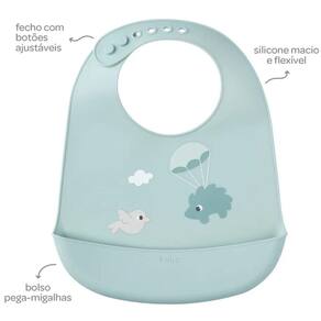 Produzido em silicone macio e flexível, o babador se adapta ao corpo da criança sem causar desconforto, permitindo que o bebê se movimente livremente durante as refeições. O material é de alta qualidade, durável e livre de substâncias nocivas, trazendo segurança para o uso diário.