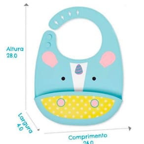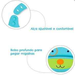 - Babador infantil de silicone Skip Hop. - Bolso profundo para pegar migalhas. - Material de silicone resistente ao calor e fácil de limpar. - Alça ajustável e confortável.