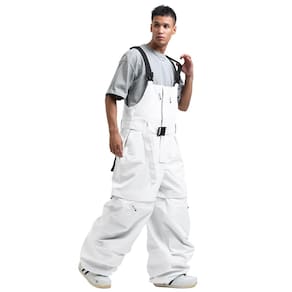 Macacão feminino masculino para snowboard para neve, super largo, impermeável, à prova de vento, isolado, solto, para esportes de inverno - ?Material?: tecido: 100% nylon, forro: 100% poliéster, babadores de snowboard super largos masculinos, à prova de vento e à prova d'água, pode efetivamente se manter aquecido no clima frio; - ?Excelente desempenho do produto?: quente, à prova de vento, à prova d'água, com grau impermeável de 15000 mm, bloqueando efetivamente a entrada de chuva e neve; os babadores de snowboard têm boa respirabilidade, mantêm secos e quentes; - ?O mais recente design exclusivo?: babadores de neve masculinos de snowboard, calças de snowboard, pernas removíveis, estilo esportivo de rua, novidade e moderno, para que você se torne a atenção mais atraente nas pistas de esqui; dois bolsos com zíper no peito e nas pernas, adequados para colocar telefones celulares, carteiras, óculos de neve; zíperes respiráveis nas coxas podem efetivamente emitir calor e umidade gerados durante o exercício, secos e confortáveis; alças elásticas ajustáveis nas pernas com uma saia interna à prova de vento; - ?Cenário de aplicação amplo?: babadores de esqui de inverno super confortáveis, quentes, leves e elegantes, perfeitos para snowboard, montanhismo, patinação, caminhadas, esportes de neve e outros esportes de inverno, também é o presente perfeito para seus amigos; - ?Dicas de lavagem?: recomenda-se lavar à mão, não usar alvejante ou secar. Consulte a tabela de tamanhos antes de comprar e imediatamente se tiver alguma dúvida.
