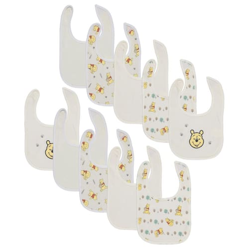 - Adoráveis designs do Ursinho Pooh da Disney - Este pacote de 10 babadores apresenta estampas encantadoras do Ursinho Pooh, trazendo o charme da madeira dos cem acres para todas as refeições