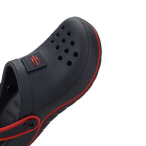 Modelo infantil que une o conforto à praticidade do fácil calce, a babuch é trazida nessa renovação de Mormaii com um apelo institucional, evidenciando o elemento com mais reconhecimento da marca, o logo da prancha, através de enfeite de plastisol sobre o cabedal, combinado com jogo de volumetrias que traz valor ao produto. Na tira traseira, a impressão em serigrafia reforça a imagem de Mormaii, independente do ângulo em que o calçado é visto.