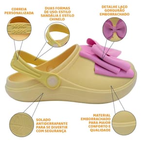 Confeccionado em material emborrachado, super confortável e com abertura para respiração dos pés. Possui solado antiderrapante, dando maior aderência em cada passo e duas opções de uso: estilo chinelo e estilo sandália.