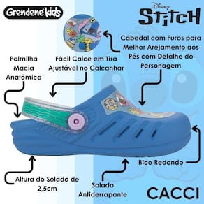 Projetado para garantir bem-estar, o modelo possui palmilha anatômica macia e solado com dois centímetros e meio de altura, que oferece estabilidade ao caminhar. Seu cabedal conta com aberturas que facilitam a ventilação dos pés, ajudando a manter a sensação de frescor mesmo nos dias mais quentes. A tira ajustável no calcanhar com acabamento translúcido permite um calce firme e fácil, acompanhando os movimentos da criança com total segurança.