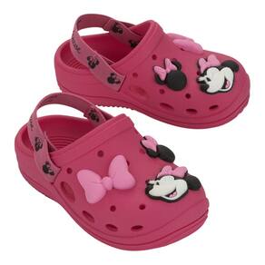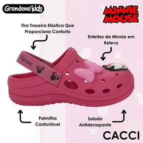 Seu design lúdico conta com enfeites da Minnie em relevo, que deixam o calçado ainda mais fofo e cheio de personalidade. A tira traseira elástica garante firmeza e segurança, mantendo o pezinho sempre bem acomodado, sem perder a praticidade no calce.