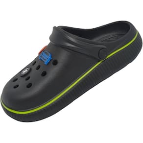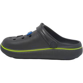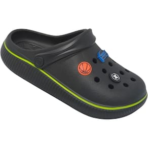 O modelo vem na cor azul marinho e preto com detalhes em laranja, além de enfeites divertidos que remetem ao universo infantil, como bola de basquete, carro e símbolo estilizado, deixando o visual ainda mais descontraído. A tira ajustável garante maior segurança e pode ser usada tanto para trás, fixando o calçado, quanto para frente, no estilo chinelo.