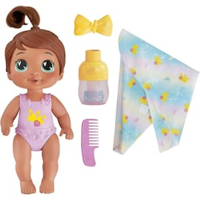Após o banho de brincadeira, enrole a boneca na toalha macia e utilize o pente e laço removível para criar diferentes estilos de cabelo. Estimule a imaginação e o cuidado com a Baby Alive Bebê Shampoo Morena da Hasbro.