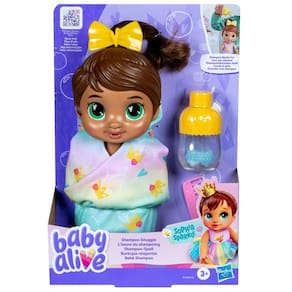 A Boneca Baby Alive Bebê Shampoo Morena da Hasbro vai transformar a hora do banho em um momento de diversão e cuidado para as crianças. Com seu frasco que gera bolhas de mentirinha ao ser inclinado, as crianças podem brincar de dar banho na boneca de maneira interativa. Além disso, o frasco pode ser utilizado vazio, com água ou até mesmo com shampoo infantil, estimulando a criatividade e o cuidado.
