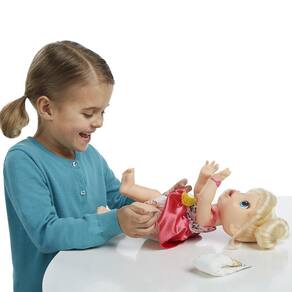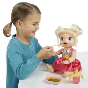 A boneca Baby Alive tem sido um sucesso em todo o país. As meninas adoram brincar de casinha criando diversas situações com sua boneca! E agora a sua filha pode ter seu próprio bebê para amar e alimentar! A Baby Alive Hora de Comer precisa de todo o carinho e amor. Sua menina pode fazer a comidinha no pratinho e também dar água para ela! Além disso, ela faz xixi e caquinha como um bebê de verdade, é só trocar a fraldinha dela e ela fica limpinha de novo! A Baby Alive Hora de Comer fala mais de 30 frases e sons e adora muito carinho e diversão!