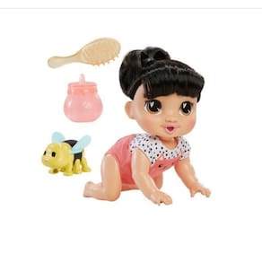 O kit Baby Alive Engatinha e Brinca traz uma boneca que engatinha de verdade. Basta apertar o botão nas suas costas para ver a boneca engatinhar e emitir sons adoráveis. Ela possui 27 cm e emite mais de 40 sons diferentes, incluindo uma música divertida. Basta encostar a mamadeira na sua boca para que a boneca emita sons de comidinha. Esta boneca vem com uma escova para pentear os seus cabelos. Esta boneca é um excelente presente para meninos e meninas a partir dos 3 anos.