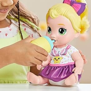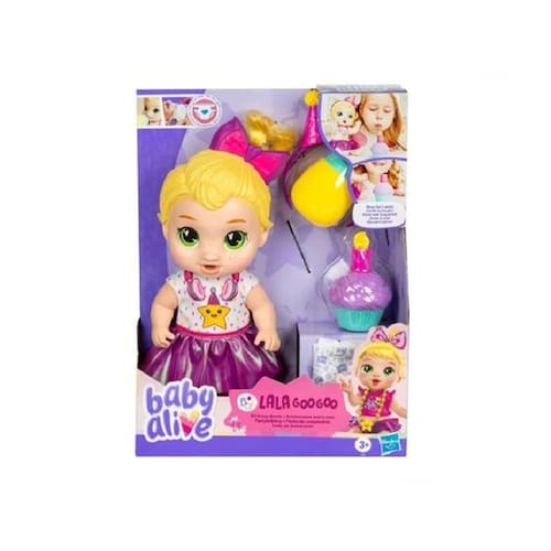 As crianças mal podem esperar para começar a celebração do seu aniversário! Com a boneca Baby Alive Festa de Aniversário LaLa GooGoo com acessórios da Hasbro, as crianças podem brincar de organizar suas próprias festas várias vezes com este kit Baby Alive. Basta colocar a faixa de cabelo chapéu de festa para começar a celebração. As crianças podem brincar de soprar a velinha com o cupcake de mentirinha! Depois de beber água da mamadeira, assim ela vai molhar a fralda! Chame toda a turminha para se divertirem.