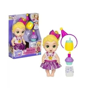Lala GooGoo mal pode esperar para começar a celebração do seu aniversário As crianças podem brincar de organizar suas próprias festas várias vezes com este kit Baby Alive. Basta colocar a faixa de cabelo chapéu de festa para começar a celebração. As crianças podem brincar de soprar a velinha com o cupcake de mentirinha Depois de beber água da mamadeira, ela vai molhar a fralda Excelente brinquedo infantil para crianças a partir dos 3 anos para celebrar a imaginação muitas vezes seguidas. Idade Recomendada: A partir de 3 anos;Dimensões aproximadas do produto: 10cm x 35cm x 23cm;Peso líquido kg : 0,4.