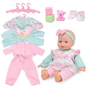 Apresentamos o companheiro perfeito para as aventuras de diversão do seu pequeno! Esta boneca de corpo macio de 35,5 cm foi projetada para capturar o coração do seu filho com suas características adoráveis e suavidade fofa. A boneca vem vestida com uma roupa encantadora, completa com um vestido de estampa floral, leggings e uma linda faixa de cabeça com laço. Mas a diversão não para por aí! Este conjunto também inclui um guarda-roupa encantador de roupas adicionais, permitindo que seu pequeno explore sua criatividade através de brincadeiras imaginativas e fantasias. Para aumentar a emoção, o conjunto é complementado por uma unidade de armazenamento aconchegante em estilo armário, perfeita para organizar as roupas e acessórios da boneca. E não vamos esquecer o pato de borracha amigável e os blocos de construção que aparecem, garantindo infinitas horas de diversão envolvente e educativa. Com sua construção de alta qualidade e atenção aos detalhes, este conjunto de bonecas certamente se tornará um companheiro querido por muitos anos. - Conjunto de fantasia de boneca: nossa boneca de corpo macio realista de 35,5 cm vem com um mini armário para guardar roupas e acessórios com conjunto de roupas e brinquedos; leve e fácil de segurar ou abraçar; o companheiro ideal para diversão sem fim - Qualidade premium e durabilidade: feito de materiais de alta qualidade; nosso conjunto de babydoll inclui 4 roupas e 3 cabides; um guarda-roupa para armazenamento; faixa de cabeça e meias combinando; um ursinho de pelúcia e blocos de brinquedo; design resistente para diversão sem fim para os pequenos - Aprender e brincar interativo: incentiva habilidades de nutrição e criatividade; nossa boneca e armário de armazenamento ajudam as crianças a organizar roupas enquanto trocam de roupa; a interpretação de papéis melhora as habilidades motoras e o desenvolvimento cognitivo de uma maneira divertida e envolvente - Tempo de diversão seguro e não tóxico: todos os padrões de segurança são atendidos pelo nosso conjunto de bonecas e todos os nossos produtos; que são feitos de materiais seguros para crianças sem BPA; os pais podem se sentir à vontade sabendo que sua filha está se divertindo com brinquedos divertidos e seguros - Gift Boutique Para pequenos: explore nossas bonecas premium, bonecas, bonecas princesas, carrinhos de bebê e acessórios projetados para trazer alegria às crianças; seja para aniversários, feriados ou eventos diários; nossos brinquedos de alta qualidade criam memórias mágicas