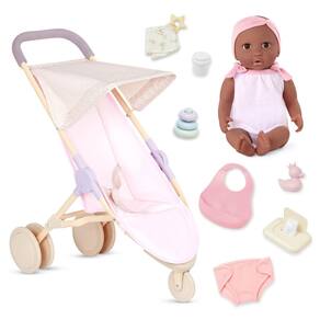Lullababy Conjunto de fraldas e acessórios de cuidados realistas de 35,5 cm, olhos marrons e corpo macio, brinquedos de brincar, boneca e carrinho de corrida, conjunto para crianças a partir de 2 anos - Pacote de bonecas: Passeie por dias inteiros de brincadeira com o conjunto de boneca e carrinho de bebê LullaBaby com uma boneca de 35,5 cm, carrinho de corrida e acessórios divertidos de RPG. - Características realistas: esta boneca LullaBaby tem olhos castanhos expressivos (abertos fixos), cílios macios ao toque e um corpo macio e abraçável feito para pequenos abraços. - Fácil de empurrar e brincar: Projetado em uma paleta moderna de rosa e roxo, o carrinho tem uma alça de espuma de fácil aderência, um dossel de bolinhas que abre e fecha e uma alça de segurança para proteger a boneca durante o tempo de viagem. - Inclui: Boneca bebê com uma roupa removível e faixa de cabeça rosa, carrinho de corrida, um brinquedo empilhável com 2 anéis removíveis, um pato de banho, um recipiente para lenços umedecidos, um mordedor, uma fralda, um copo com canudinho e um babador. - Montagem fácil: o carrinho vem junto em 4 etapas fáceis, instruções ilustradas fornecidas; mede aproximadamente 52,5 cm (A) x 25,4 cm (C) x 54 cm (L) quando totalmente montado. - Enriqueça a brincadeira: as bonecas e acessórios LullaBaby são um item essencial para pais que buscam nutrir corações e mentes jovens desde cedo, incentivando a imaginação e inspirando a bondade enquanto as crianças cuidam de sua boneca de maneiras emocionantes. - Ótimo para crianças a partir de 2 anos: é um presente maravilhoso e a primeira boneca perfeita para crianças apreciarem por muitos anos.
