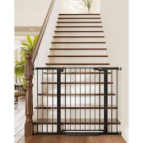 Cumbor Baby Gate --- Guardião de segurança da sua criança O portão de bebê Cumbor é projetado para manter o bebê e os animais de estimação exatamente onde deveriam estar. Este portão resistente para bebês pode ser aberto facilmente com uma mão e ajustado para caber na porta e larguras de abertura de 29,7 a 122 cm. A montagem por pressão não requer ferramentas ou perfuração, o que é rápido e fácil de instalar, não causando danos às paredes. A trava no portão pode travar o portão automaticamente, sem necessidade de esforços, o que definitivamente criará um espaço seguro para o seu bebê. Acreditamos que as mães devem ficar livres de cuidar das crianças 24 horas por dia e aproveitar seu próprio tempo. Escolha Cumbor agora para realmente aproveitar o seu tempo com bebês e animais de estimação. Dicas: ? Para facilitar a instalação, não corte o fecho até que o portão tenha sido instalado. ? A folga entre a trava e a estrutura é compreensível, nem defeituosa nem dobrada, e seria encurtada após a instalação. ? Para instalação, basta colocar o portão nas portas, escadas ou quaisquer aberturas e, em seguida, girar as porcas de tensão até que o espaço entre a alça e a trava esteja dentro de 2 mm. ? Sugerimos usar copos de parede se você quiser instalar o portão no topo das escadas para melhor segurança. ? Projetado para sua conveniência, o portão do bebê pode ser instalado através de montagem de pressão ou do hardware incluído para fixar o portão à sua parede. Conteúdo da embalagem: A Cumbor, como uma marca líder de portões para bebês, está sempre comprometida em fornecer uma experiência de compra superior para seus clientes. - Cobertura extra alta e ampla: este portão de bebê para escadas e entradas tem 91 cm de altura e se ajusta de 29,7 a 122 cm de largura; ideal para impedir que crianças, filhotes ou cães maiores acessem áreas fora dos limites em sua casa - Operação com uma mão com fechamento automático: abra facilmente o portão com uma mão; o portão fecha automaticamente atrás de você; possui uma parada de 90 graus para conveniência e segurança adicional em famílias ocupadas - Estrutura de aço carbono durável: Feito de aço carbono reforçado, este portão pode suportar impactos de até 150N; ideal para casas com animais de estimação grandes, como Huskies ou Labradores, ou crianças aventureiras - Fácil instalação com pressão: instale em minutos sem ferramentas ou perfuração; o design montado sob pressão protege suas paredes; suporte de hardware opcional disponível para maior estabilidade em áreas de alto tráfego - Ajuste personalizável e flexível: vem com várias extensões para acomodar diferentes tamanhos de porta; suporta montagem por pressão e instalação de ferragens para escadas, portas e corredores