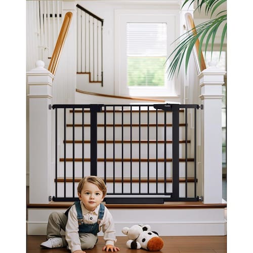 Cumbor Baby Gate --- Guardião de segurança da sua criança O portão de bebê Cumbor é projetado para manter o bebê e os animais de estimação exatamente onde deveriam estar. Este portão resistente para bebês pode ser aberto facilmente com uma mão e ajustado para caber na porta e larguras de abertura de 29,7 a 122 cm. A montagem por pressão não requer ferramentas ou perfuração, o que é rápido e fácil de instalar, não causando danos às paredes. A trava no portão pode travar o portão automaticamente, sem necessidade de esforços, o que definitivamente criará um espaço seguro para o seu bebê. Acreditamos que as mães devem ficar livres de cuidar das crianças 24 horas por dia e aproveitar seu próprio tempo. Escolha Cumbor agora para realmente aproveitar o seu tempo com bebês e animais de estimação. Dicas: ? Para facilitar a instalação, não corte o fecho até que o portão tenha sido instalado. ? A folga entre a trava e a estrutura é compreensível, nem defeituosa nem dobrada, e seria encurtada após a instalação. ? Para instalação, basta colocar o portão nas portas, escadas ou quaisquer aberturas e, em seguida, girar as porcas de tensão até que o espaço entre a alça e a trava esteja dentro de 2 mm. ? Sugerimos usar copos de parede se você quiser instalar o portão no topo das escadas para melhor segurança. ? Projetado para sua conveniência, o portão do bebê pode ser instalado através de montagem de pressão ou do hardware incluído para fixar o portão à sua parede. Conteúdo da embalagem: A Cumbor, como uma marca líder de portões para bebês, está sempre comprometida em fornecer uma experiência de compra superior para seus clientes. - Ideal para espaços amplos: este portão de bebê tem 77,5 cm de altura e se ajusta de 29,7 a 122 cm de largura; cabe na maioria das portas e corredores; garante que seu pequeno explore com segurança em casa - Operação com uma mão; recurso de fechamento automático: abra facilmente o portão enquanto segura seu bebê; o portão fecha automaticamente atrás de você; a ampla passagem de 59,9 cm permite movimento conveniente com os itens - Estrutura durável e resistente: feito de aço resistente; resiste a impactos de até 150N; evita que crianças e animais de estimação empurrem para baixo ou escalem; oferece segurança duradoura - Fácil instalação; sem danos na parede: a configuração montada com pressão não requer ferramentas ou perfuração; instala em 10 minutos; deixa as paredes limpas e intactas; adequado para escadas, corredores e portas - Proteção de segurança dupla: possui uma liberação de segurança de trava dupla exclusiva; evita que crianças abram o portão; o espaçamento da barra de 5,8 cm impede que crianças e animais de estimação se espremam