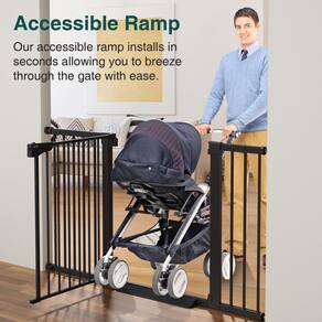 Impede que as crianças cheguem às escadas ou mantenha os animais de estimação confinados a determinados espaços com um portão extra largo da Cumbor. Seja uma criança curiosa que adora se meter em travessuras ou um cão intrometido sempre em problemas, existem simplesmente certas áreas da sua casa que você deseja ultrapassar os limites. E seja para segurança ou para sua própria sanidade, você precisa de um portão que cubra os espaços de forma mais eficaz enquanto ainda facilita o seu dia. É por isso que desenvolvemos o Cumbor Baby Gate que é extra largo, fácil de instalar e fecha automaticamente atrás de você, para que você possa manter um melhor controle sobre sua casa. Mantenha as crianças pequenas e os animais de estimação brincalhões seguros. Existem apenas certas áreas da sua casa onde você não quer crianças ou animais de estimação passeando; seja para sua segurança ou para proteger o que quer que esteja no cômodo. É por isso que nosso portão de bebê com uma mão é mais largo, mais estável e mais fácil de usar em quase qualquer espaço. Feitos com aço de carbono leve e resistente, esses portões versáteis para bebês com montagem de pressão podem bloquear escadas, quartos, cozinhas e muito mais — tudo para tornar sua casa um pouco mais segura para todos que moram lá. Detalhes do produto: Portão extra largo para bebês com operação com uma mão fecha automaticamente para 90°) Montagem de pressão de tensão (sem perfuração), extensão máxima de largura de até 137,7 cm, travas duplas de aço carbono forte e durável para maior proteção infantil. Longa vida útil (até 10.000 usos em um lado). Garantia de qualidade confiável Mantenha seu pequeno mais seguro ou seu animal de estimação fora de certas áreas com um portão de bebê da Cumbor projetado para conveniência dos pais e segurança do bebê. - Recebedor orgulhoso do prêmio de escolha da mãe – na Cumbor, usamos décadas de experiência do cliente, e é por isso que pais e especialistas nos escolhem. Temos orgulho de que nossos portões de segurança se tornaram acessórios amados em milhares de casas felizes, protegendo bebês e animais de estimação - Cobertura extra ampla do portão: com uma altura de 77,5 cm e uma largura ajustável de 29,7 a 137,7 cm, este amplo portão para bebês permite que você bloqueie escadas, portas de quarto, corredores e outras áreas fora dos limites dentro de sua casa para melhor segurança das crianças ou animais de estimação. Uma ótima opção para novos pais - Instalação com pressão – não precisa se preocupar em perfurar paredes ou instalações complicadas. O design montado por pressão facilita a montagem do portão do bebê e do cão sem danificar paredes ou superfícies. O suporte de pressão Y para corrimãos arredondados é uma solução amigável e segura de portão de bebê para curvas. Perfeito para escadas, corredores, portas e espaços abertos - Mantém um espaço doméstico mais seguro – Estes portões para cães para a casa são projetados para fornecer 150N. Proteção contra impactos contra crianças ou animais de estimação encostados ou descansados na moldura, tornando-os ideais para Huskies, Labradores ou cães altos. Nossa rampa acessível é instalada em segundos, permitindo que você passe rapidamente pelo portão com facilidade. Ótimo para famílias com crianças e animais de estimação - Segurança aprimorada e acesso bidirecional – seus curiosos gatinhos serão bloqueados pelo portão do bebê no topo das escadas, graças à nossa liberação de segurança com trava dupla, o que dificulta a abertura do portão das crianças. Ele também abre em ambas as direções com uma abertura e parada de 90° e fechamento automático para maior segurança. Mantém seus bebês seguros