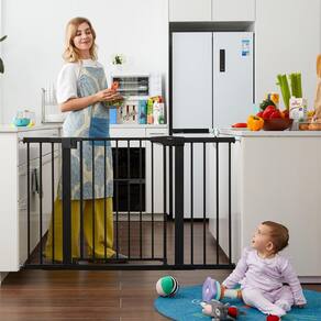 Nós inovamos e oferecemos produtos de alta qualidade para mães e bebês - Largura extra: se expande para caber em aberturas entre 75-129 cm de largura, tem 76 cm de altura, adequado para a maioria das escadas de casa, portas, corredores. - Design de fechamento automático: a passada pela porta fecha automaticamente depois de você, a passagem pela porta tem 58 cm de largura, o homem de 90 kg ainda pode passar facilmente. - Sem instalação de perfuração e adequado para parede: design de montagem de pressão que é rápido de instalar sem qualquer ferramenta, sem furos de perfuração mantém sua parede intacta, o portão pode ser removido rapidamente da abertura para fácil armazenamento. - Liberação com uma mão e segura: os Aults podem facilmente abrir usando uma mão mesmo que você esteja segurando um bebê na outra mão ou empurrando um carrinho, enquanto a alça de duas ações permanece resistente para o seu bebê ou cão soltar. - O que você recebe: portão de bebê Mumeasy para bebês, kits de extensão de 2,5 x 7 cm e 1 x 14 cm, guia de boas-vindas (sem garantia de versão em português).
