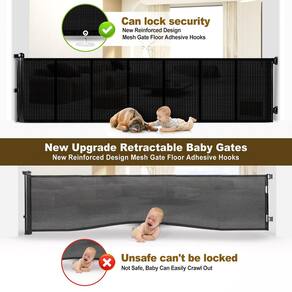 portões retráteis para bebês, portão retrátil para cães, portão retrátil de 304 cm, portão de bebê retrátil, portão de bebê 304 cm de largura, 3 m, portão retrátil para bebês - Portões retráteis atualizados: os portões retráteis Miumoon apresentam um design inovador de barra de fibra que melhora a estabilidade, evitando a deformação da malha superior e inferior. Isso elimina o risco de crianças ou animais de estimação engatinharem ou se espremerem pelo portão. O design da haste de fibra garante uma experiência de retração excepcionalmente suave. - ?Uso de bloqueio de segurança? Miumoon trava retrátil requer pressionar e girar dois passos simples para abrir e fechar, garantindo que os adultos possam operar facilmente o portão com uma mão, evitando que pequenos curiosos e animais de estimação busquem a liberdade. - ?Supersegurança?O portão de bebê Miumoon utiliza materiais de segurança inovadores, dando às mães tranquilidade ao usá-lo para seus bebês. O material de malha é mais macio para bebês, reduzindo as chances de lesões enquanto brincam. O portão retrátil Miumoon não tem barra inferior – portanto, não há perigo de tropeçar. - Fácil instalação: pode ser instalado na parte superior e inferior de escadas, portas, corredores, uso interno e externo. Com as ferramentas fornecidas, você pode instalar sua nova cerca infantil de malha em minutos. Você receberá: 1 portão de malha retrátil, 2 suportes, 2 travas, 8 âncoras de parede, 8 parafusos, 1 manual de instruções (sem garantia de versão em português). Usando as ferramentas fornecidas, você pode instalar seu novo portão retrátil em minutos. - Observação: todos os portões retráteis Miumoon foram submetidos a testes de padrões de segurança, atendendo ou excedendo os padrões ASTM ou EN. Eles vêm com uma garantia limitada de 2 anos. Este portão é destinado ao uso com crianças de 6 a 24 meses ou animais de estimação pequenos a médios de 4,5 kg a 18 kg. Meça sua porta antes de comprar. Requer furos.