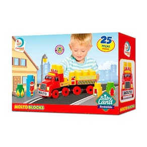 Conheça a nova coleção Baby Land Molto Blocks. Baby Land Bombeirinho é um brinquedo super divertido, educativo e que estimula a coordenação motora. É composto por 25 peças para a criança montar seu próprio caminhãozinho! Vem também com 1 cartela de adesivos.