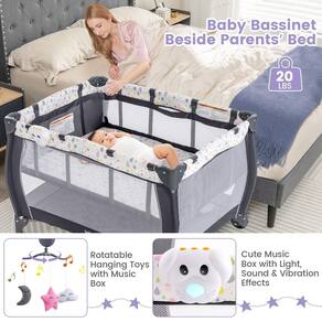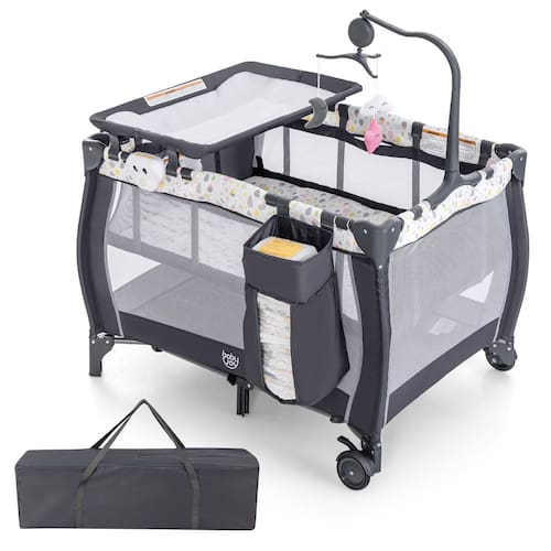 Costzon Pacote 3 em 1 e brinque com berço, playard portátil para bebê com trocador, berço, caixa de música, brinquedos giratórios, rodas/freio, cesta grande, bolsa (cinza + gota de água) - ?AcompanhCostzon o bebê a crescer? um pacote dobrável 3 em 1 projetado para o transporte de recém-nascido para criança, acompanha o crescimento do seu bebê. O trocador resistente à água mantém o bebê de forma estável e vira quando não estiver em uso. Berço removível para o bebê tirar uma soneca. O parque infantil de tamanho normal pode fornecer o amplo espaço que permite que o bebê pratique ficar em pé e andar, disponível de bebê para crianças. (Tamanho adequado do colchão: 96 x 66 cm). - ?Estrutura forte e material premium? Feito de tecido oxford de alta qualidade e estrutura de ferro antiferrugem, este playard portátil vem com forte capacidade de carga (capacidade máxima de peso do centro de atividade: 15 kg) e garante um longo tempo de serviço, adequado para crianças de 0 a 36 meses de idade. E a certificação ASTM garante a segurança do nosso bebê. O design de malha respirável oferece uma melhor visibilidade para observarmos o bebê a qualquer momento. - ?Brinquedo para pendurar e bolsa de armazenamento conveniente? O brinquedo para pendurar possui 3 bonecas fofas e uma caixa de música. As bonecas fofas não apenas promovem o desenvolvimento visual do bebê, mas também melhoram a capacidade de agarrar; a caixa de música pode acalmar seu bebê e deixar o bebê adormecer rapidamente. A bolsa de armazenamento pode ser instalada em qualquer apoio de braço para armazenar fraldas, mamadeiras, lenços e outras necessidades. - ?Rodas bloqueáveis com freios? 2 rodas traváveis com freios para estabilidade durante o uso, este centro de berçário dobrável é conveniente para transportar para que possamos movê-lo para onde quisermos facilmente. Você pode configurar e dobrar em apenas 4 passos simples. Certifique-se de travar a cerca antes de empurrar a base inferior para manter a resistência. - ?Playard dobrável e fácil de transportar? Com um botão, sem nenhuma ferramenta, este pacote premium é fácil de dobrar em um tamanho compacto que nos permite usá-lo e armazená-lo no armário ou contra a parede com facilidade. Além disso, equipado com uma bolsa de mão ajuda você a guardar o berço dobrado e oferece um lugar para o seu bebê dormir quando você sair para visitar parentes ou viajar. É a melhor escolha para sair para brincar!