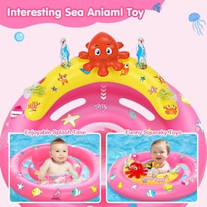O flutuador de piscina inflável para bebês com dossel inclui formato de unicórnio bebê e dossel removível. A bóia para bebês com toldos fornece proteção solar UPF 50+ para evitar que a luz solar brilhe no rosto do bebê. A malha lateral foi projetada para ajudar os bebês a interagir com os pais e aproveitar o tempo na piscina. Perfeito para piscina ao ar livre, praia, banheira coberta ou em qualquer lugar do mundo aquático. - Hora de nadar: o flutuador de piscina para bebês vem com polvo estridente, golfinho brilhante e divertidos sinos de algas marinhas. Atrai bebês para brincar na água ou aprender a nadar. O design oco exclusivo entre dois airbags mantém as mãos do bebê ocupadas e gosta mais de nadar. São os brinquedos de piscina mais atraentes da piscina. O Baby Swim Float ajuda seu bebê a crescer e se desenvolver desde cedo. Tenha uma ótima diversão de verão com seus filhos! - Cobertura removível e ajustável: o bebê flutua de 6 a 12 meses com uma cobertura solar UPF50+, protegendo a pele delicada do bebê da forte luz solar. As laterais de malha respirável oferecem visibilidade clara para ajudar o bebê e os pais a interagir enquanto nadam. O design ajustável permite que a bóia do bebê seja totalmente coberta ou parcialmente coberta, fornecendo proteção total. Nunca se preocupe em não poder ir à praia ou piscina com seus filhos nos dias quentes de verão. - Proteção abrangente de 360°: a segurança do bebê é sempre a principal prioridade. Este flutuador para bebês com dossel adiciona duas câmaras de ar para manter o bebê no lugar e evitar inclinar-se para frente, virar ou deslizar para fora. Os lados extra largos fornecem superestabilidade e equilíbrio, evitando efetivamente a reviravolta para trás. O encosto aprimorado reduz a fadiga do bebê de ficar sentado por muito tempo e elimina a necessidade de a mãe segurar o bebê o tempo todo. - Mais seguras e convenientes: as boias para crianças são feitas de material de PVC de alta qualidade e atendem aos padrões internacionais de brinquedos. Não tóxico e inodoro, resistente a rasgos e se recusa a vazar ar. O confortável bolso de malha do assento tem cinto de segurança ajustável para apoiar perfeitamente o bebê, permitindo que ele aproveite o verão na piscina com confiança. O flutuador de piscina infantil é fácil de esvaziar ou dobrar para armazenamento e transporte. Ótimos itens essenciais para a praia para bebês, por que não comprá-los? - Presente de verão ideal para crianças: esta piscina flutuante para crianças foi projetada para bebês de 6 a 36 meses, pesando menos de 50 libras, ajuda a exercitar o equilíbrio corporal, fortalecer os músculos e reduzir o risco de afogamento. Ótimo flutuador de piscina infantil para festas temáticas de verão, brinquedos de piscina, festas na piscina, viagens à praia, lagos ou qualquer diversão aquática. Bóias perfeitas para bebês de 3 6 12 18 24 36 meses para viajar. Mal posso esperar para ter a alegria da piscina de verão!