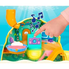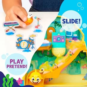 Baby Shark - Big Show Playset - Sunny 2364 Mergulhe no mundo aquático do Baby Shark com o Big Show do Baby Shark Jogo da Casa do Tubarão Baseado na nova série animada pré-escolar da Nickelodeon, este playset inclui mais de 25 peças e apresenta muitas maneiras de brincar com o Baby Shark e seu melhor amigo, William. Descubra a cozinha, o quarto e a sala de estar do Baby Shark. Finja nadar de sala em sala em balanços de natação ou desça o escorregador. Ligue a máquina de karaokê do Baby Shark para cantar junto com o Big Show do Baby Shark música tema e faça uma festa dançante com a bola de discoteca iluminada do Baby Shark Arrase com diferentes instrumentos musicais, coma alguma coisa ou pegue alguns zzzs na cama do Baby Shark. Para nadar- Surpresa nacional, a chaminé removível torna-se um apito Completo com adesivos que brilham no escuro, o Shark House fecha para facilitar o armazenamento. Este playset da WowWee estimula a imaginação e a criatividade. Para meninos e meninas a partir de 3 anos.