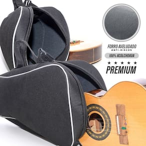 Proteção completa com espuma EVA de 10 mm de alta densidade Nylon 600 Rip-Stop impermeável que protege contra chuviscos e poeira Forro interno com pelúcia macia antirriscos que preserva o acabamento do instrumento Design funcional com alça de mão e alça tiracolo acolchoada para conforto no transporte Bolso frontal prático para guardar acessórios como afinador, palhetas, correia ou cabos Zíper duplo número 10 reforçado e costuras triplas para maior durabilidade Dimensões internas ideais para cavaquinhos padrão com folga segura