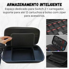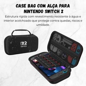 Bag com alça protetora para novo nintendo switch 2 +película Cor: vermelho seu nintendo switch 2 merece mais do que uma simples bolsa. Com a case bag com alça e película de vidro, você garante proteção reforçada, estilo e praticidade em todos os momentos, seja no dia a dia ou em viagens. com estrutura rígida e resistente à água, essa case foi desenvolvida especialmente para o modelo 2025 do switch 2. Seu interior é revestido com material macio que protege contra riscos e impactos, enquanto os compartimentos internos mantêm tudo organizado com segurança. e para proteger ainda mais o seu console, acompanha uma película de vidro temperado, que mantém a tela livre de riscos, impressões digitais e pequenas batidas, sem atrapalhar a sensibilidade ao toque. leve o console, carregador, acessórios e até 12 cartuchos de jogos no mesmo estojo, com total praticidade. A alça de mão reforçada oferece conforto no transporte, enquanto o design compacto facilita o uso em qualquer situação. adquira sua case bag com alça + película de vidro para nintendo switch 2 e tenha mais tranquilidade para levar seu console para onde quiser, com segurança e organização de verdade ------------------ ------------------ é compatível com qual modelo do nintendo switch r: compatível somente com o nintendo switch 2 modelo 2025 . a case é realmente rígida r: sim a estrutura externa é rígida e reforçada, oferecendo ótima proteção contra impactos e quedas leves. acompanha película de vidro r: sim enviamos uma película de vidro temperado inclusa no kit, pronta para proteger a tela do seu console. cabe o console e o carregador juntos r: sim o interior possui espaço dedicado para o switch 2 e o carregador, com divisão segura. a case risca o console por dentro r: não o interior é totalmente revestido com material macio, evitando riscos na tela ou carcaça do console. a case cabe em mochilas r: sim o design é compacto e fino, cabendo facilmente em mochilas, bolsas e malas de mão. ------------------ Especificações ------------------ Material externo: rígido e resistente à água Material interno: revestimento macio e acolchoado Proteção: contra riscos, impactos leves e respingos Armazenamento interno: Espaço para console + carregador Bolso com zíper em tela para acessórios Suporte interno para até 12 cartuchos de jogo Fechamento: zíper reforçado de alta durabilidade Compatibilidade: exclusivo para o nintendo switch 2 modelo 2025 ------------------ Conteúdo ------------------ 1x case rígido com alça 1x película de vidro temperado 1x kit de limpeza. Anúncio referente a case Console, jogos e acessórios que ambientam as fotos não inclusos. ------------------ Apresentação: ------------------ - qualidade garantida. - atendimento qualificado. - enviamos para todo o brasil. - compra garantida. - despachamos em até 1 dia útil após confirmação do pagamento Garantimos a devolução por arrependimento em até 7 dias, após o recebimento e de 15 dias contra defeitos de fabricação.