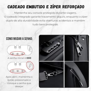 Bag para transporte diversos bolso para nintendo switch oled Cor: azul marinho Proteção, praticidade e estilo em um único produto. A case bag universal foi desenvolvida para transportar seus dispositivos com total segurança, combinando design moderno, estrutura rígida e acabamento premium. Compatível com nintendo switch, switch oled, switch 2 v2 , além de celulares e acessórios. Ideal para viagens, deslocamentos e o dia a dia - mantendo tudo protegido e sempre à mão. Conta com porta usb lateral, permitindo carregar seus dispositivos através de power bank não incluso , e cadeado embutido com senha, oferecendo mais segurança contra acessos indesejados. Com alça ajustável e ergonômica, pode ser Utilizado no ombro ou transversalmente, seu interior espaçoso e acolchoado possui divisórias inteligentes para acomodar console, tablet, cabos e acessórios. Design versátil, resistente à água e ideal para quem busca praticidade sem abrir mão da proteção. ------------------ ------------------ Essa bolsa é compatível com o nintendo switch R: sim compatível com todas as versões do nintendo switch v1, v2 e oled . Possui entrada usb funcional R: sim, conta com porta usb lateral externa para uso com power bank não inclusa . A bolsa é à prova dágua R: ela é resistente à água e respingos, ideal para uso urbano e viagens curtas. O cadeado vem incluso R: sim, a bolsa possui cadeado de combinação embutido para maior segurança. Posso alterar a senha do cadeado Basta segurar o botão lateral e soltar apenas quando colocar a nova senha. ------------------ Especificações ------------------ Modelo: case bag universal com cadeado e porta usb Material: material sintético premium + estrutura rígida eva Dimensões: 21 34 12 cm Recursos adicionais: porta usb lateral, cadeado embutido, alça ajustável Compatibilidade: nintendo switch 2 / nintendo switch oled / nintendo switch v2. ------------------ Conteúdo ------------------ 1x case bag universal com cadeado e porta usb Anúncio referente a case bag Acessórios que ambientam as fotos não inclusos. ------------------ Apresentação: ------------------ - qualidade garantida. - atendimento qualificado. - enviamos para todo o brasil. - compra garantida. - despachamos em até 1 dia útil após confirmação do pagamento Garantimos a devolução por arrependimento em até 7 dias, após o recebimento e de 15 dias contra defeitos de fabricação. Marca: Não Informado