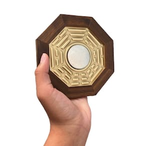O Baguá Céu Anterior Convexo Madeira Imbuia Oitavado da Bialluz, com 12,50 cm de altura e feito em metal niquelado, este símbolo traz harmonia e sorte para sua casa ou escritório.Deixe fluir a energia positiva e afaste a negatividade com este poderoso amuleto.Perfeito para decorar espaços de acordo com os princípios do Feng Shui ou para quem aprecia elementos simbólicos em sua decoração, este Baguá é uma adição distinta a qualquer ambiente.