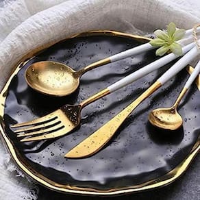 BAIHUAXIN Conjunto de talheres dourados, 24 peças, para 6 pessoas, conjunto de talheres dourados polidos antiferrugem, i Descrição: Os utensílios de mesa são feitos de aço inoxidável de alta qualidade, que é durável e antiferrugem.