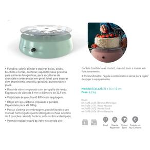 Funções: Confeitar, expositor, base giratória para câmeras fotográficas, para esculturas de chocolate e artesanatos em geral;