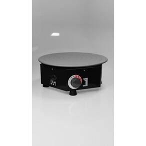 Nformações técnicas Bivolt Automático; Suporta até 15kg; 10 Níveis de variação de velocidade; Embreagem para uso manual; Marcação para centralizar o bolo; Disco giratório em alumínio usinado com sistema prático de encaixe facilitando a limpeza; Corpo em aço carbono cm pintura epóxi; Dimensões e peso: Alt. 15 x Lar. 35 x Com. 35 - 5kg