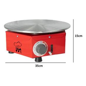 Informações técnicas Bivolt Automático; Suporta até 15kg; 10 Níveis de variação de velocidade; Embreagem para uso manual; Marcação para centralizar o bolo; Disco giratório em alumínio usinado com sistema prático de encaixe facilitando a limpeza; Corpo em aço carbono cm pintura epóxi; Dimensões e peso: Alt. 15 x Lar. 35 x Com. 35 - 5kg