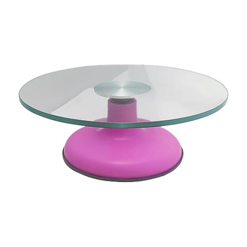 A bailarina é feita de vidro rosa pink e possui capacidade para suportar até 30 kg. Seu prato giratório de vidro, com espessura de 6mm, garante durabilidade e sustentabilidade. Com o suporte de silicone, a bailarina não inclina com peso nem desliza ao confeitar. Sua base de plástico resistente conta com pé emborrachado antiderrapante.