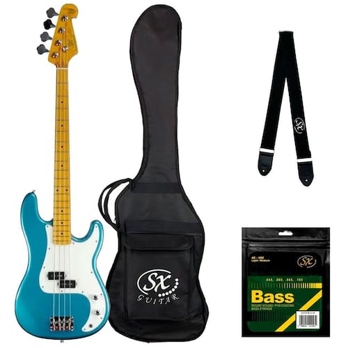 Modelo: SX SPB- Série: SX SPB57+ estilo PB Tradicional Vintage plus- Construção: Braço parafusado- Braço: Maple- Escala: Maple- Corpo: Basswood- Cordas: 4 cordas- Trastes: 20- Tarraxas: Tradicionais vintage- Presilha de cordas: String Tree Round- Ferragens: Cromadas- Ponte: Tradicional vintage- Escala: 870 mm (34,25")- Largura do nut: 42 mm (1,654")- Escudo: Clássico Branco- Marcação: Dot Black- Captadores: PB Tradicionais passivos- Circuito: Passivo- Controles: 1 Volume, 1 Tone- Acessórios: Gig Bag de nylon BB400 Dimensões: - Dimensões do produto (L x P x A): 33 x 118 x 6 cm- Peso líquido aproximado: 4,2 kg Itens Inclusos: 1 Baixo SX Precision SPB57 1 Gig Bag de nylon BB400Alça almofadada SXJogo extra de cordas p/ baixo 4 cordas 045