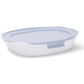 Rubbermaid Utensílios de vidro DuraLite, 2,5 litros, branco - Para desempenho superior de cozimento e cozimento, os utensílios de cozinha Rubbermaid DuraLite são feitos de vidro premium projetado para alta tolerância ao calor e durabilidade - Seguro para uso em forno e grelhador com temperaturas de até 550 graus Celsius, a assadeira de vidro Rubbermaid DuraLite pode facilmente ir do forno à mesa para a geladeira ou freezer - Rubbermaid A assadeira de vidro DuraLite é 20% mais leve do que a assadeira de cerâmica, bem como resistente a quebras e lascas - Estas assadeiras são encaixáveis e empilháveis para facilitar a organização da cozinha; além de livres de BPA, micro-ondas, freezer e lava-louças - Inclui uma assadeira de 2,5 litros com tampa