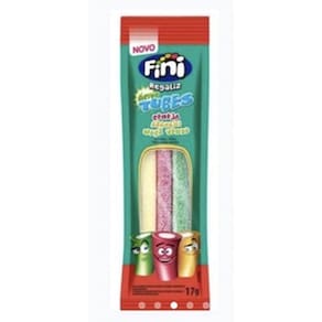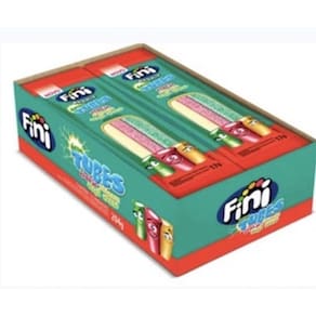 Caixa contedo 12 pacotes com 15 gramas cada de bala de gelatina Fini Três Cores,