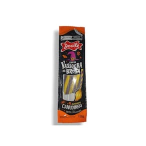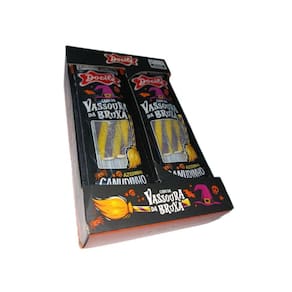 Bala de gelatina Canudinho Azedinho Cabo de Vassoura da Bruxa sabor frutas vermelhas com 15 gramas cada. Caixa contendo 12 unidades. Peso líquido total 180 gramas.
