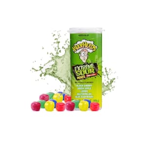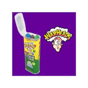 Mini Balas Extreme Sour 49g Warheads Warheads, é a marca mundialmente conhecida pela produção de balas super ácidasSão perfeitas para os adoradores de sabores extremamente azedos.Essa versão apresenta as Minis Hard Candy, que vêm nos sabores: cereja preta, maçã verde, limão, melancia e framboesa azul.A warheads é uma marca frabricada atualmente pela Impact Confections, e mundialmente famosa pelos seus doces extramamente azedos. Ingredientes:- Xarope de milho, açúcar, ácido málico, ácido cítrico, goma de acácia, amido modificado (ajuda no processamento), óleo vegetal, sabor artificial, óleo mineral, azul 1, vermelho 40, amarelo 5. Cuidados:- Manter em local limpo, fresco, seco e sem cheiro.