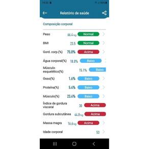 Balança Bioimpedância Gordura Corporal Peso Imc Musculatura A Balança de Bioimpedância Mini oferece diversos resultados para um acompanhamento mais eficaz dos dados sobre o seu corpo, de forma simples e fácil via aplicativo para iOS e Android em seu Smartphone, e assim ter um controle maior sobre sua saúde. Para fazer o download e começar a utilizar o aplicativo não é necessário possuir a balança. Você pode fazer o registro do seu peso e altura manualmente.