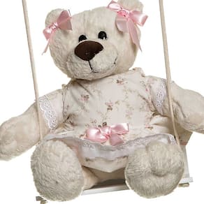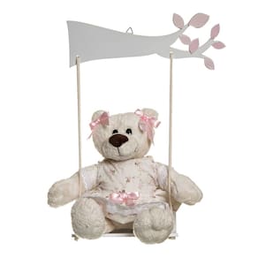 Complemente a decoração ou porta da maternidade com esse enfeite decorativo que foi desenvolvido, artesanalmente, com rico acabamento para deixar qualquer ambiente bonito e encantador. Dados Técnicos Balanço e suporte em madeira laqueada com urso de jardineira. Medidas Largura: 36 cm Altura: 34 cm