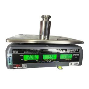 - Fabricante: Systel - Modelo: MICRA - Capacidade: 35kg - Resolução: 5g/10g - Divisão: 5g de 0kg a 15kg / 10g de 15,005kg a 35kg - Tara: 9kg - Bandeja de pesagem em aço inoxidável - Visor LCD - Teclado Touch -Memória para até 4 preços - Bateria com autonomia de até 36h - Fonte carregadora bivolt automatica (110/220V) - Homologada pelo INMETRO atraves da Portaria Inmetro/Dimel, ou seja, apta a trabalhar em estabelecimentos abertos ao publico. - Garantia de 12 meses com ampla rede de assistencias tecnicas autorizadas no Brasil.