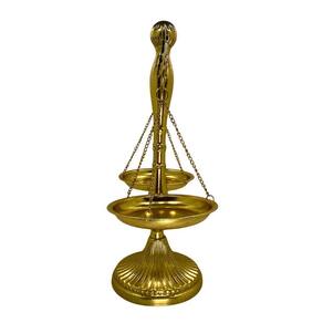 Adicione um toque de elegância e simbolismo ao seu ambiente com esta majestosa Balança da Justiça decorativa. Fabricada em metal com acabamento dourado luxuoso, esta peça apresenta um design clássico que remete à tradição e solenidade. Com dimensões impressionantes de 47 cm de altura, 38 cm de largura e 18 cm de profundidade, esta balança se destaca como elemento decorativo em escritórios de advocacia, tribunais ou ambientes que buscam transmitir equilíbrio e justiça. Os detalhes ornamentados incluem acabamentos em folhas decorativas na parte superior e uma base robusta com padrão ondulado. As duas bandejas perfeitamente equilibradas são sustentadas por correntes douradas, criando um visual harmonioso e sofisticado. Com peso aproximado de 850g, esta peça da Brás Continental combina durabilidade com beleza atemporal, sendo ideal para decoração de ambientes profissionais ou residenciais que buscam um toque de distinção e simbolismo.